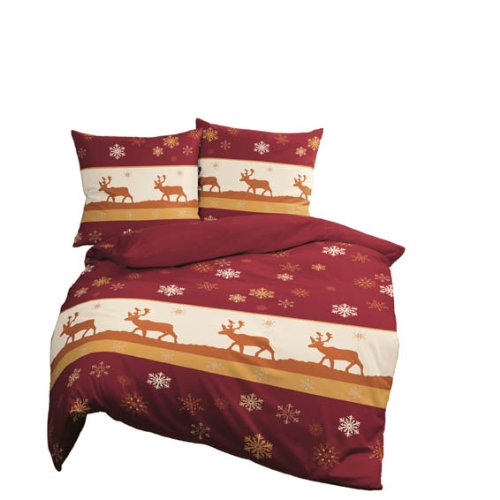 Bierbaum Wohnen 4597_02 Bettwäsche Elch 135 x 200 cm, Feinbiber/Flanell, rot