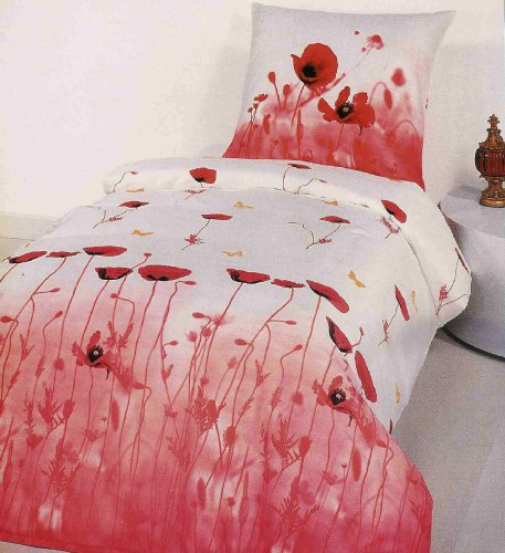 Bügelfreie Seersucker Wendebettwäsche, mit Qualitäts Reissverschluss. Motiv: Mohnblumen in rot-weiß Größe: 135x200 cm und 80x80 cm (2-teilig) Qualität: Schadstoffgeprüfte Textilien daher sehr hautfreundlich. Pflege: waschbar bis 60 ° C. und ohne optische Aufheller waschen. Trocknerfest!