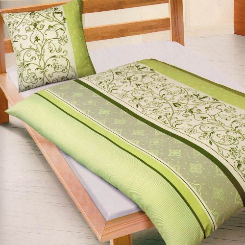2 Teilige Microfaser Bettwäsche Ornamente Linien Grün MAG19 Bettbezug 135x200 cm, Kissenbezug 80x80cm