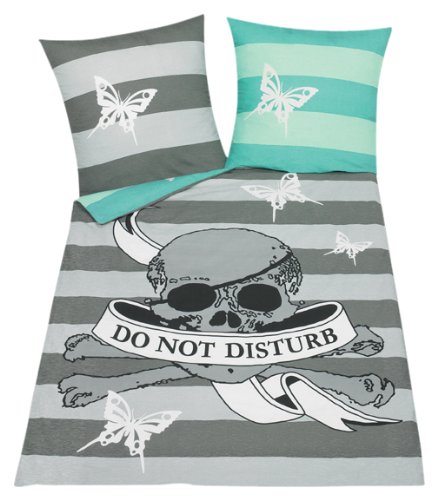 Herding 465907050 Bettwäsche, Totenkopf Petrol, Biber, 80/80 - 135/200 cm